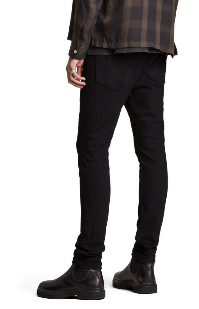 Slight distressing lends a worn-in feel to modern skinny jeans in an inky hue.